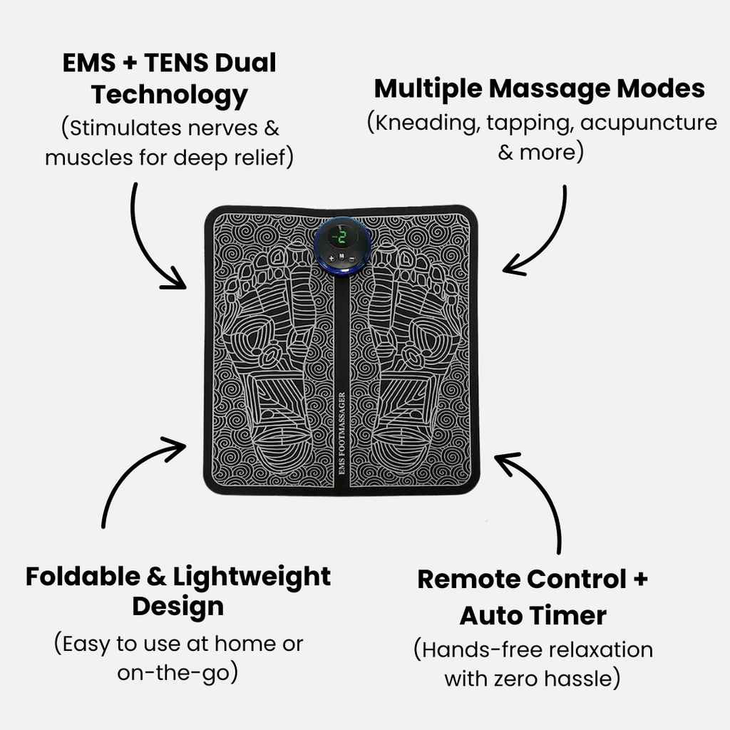 SavU Foot Massager uses Neuromuscular Electrical Stimulation (NMES) technology to temporarily reduces swelling, cramping, and pain so you can go about your day and enjoy your life as much as possible.